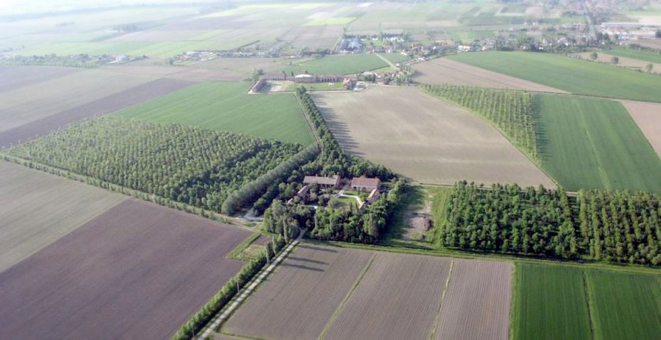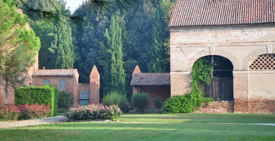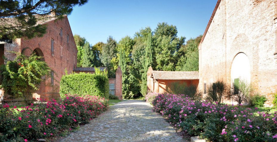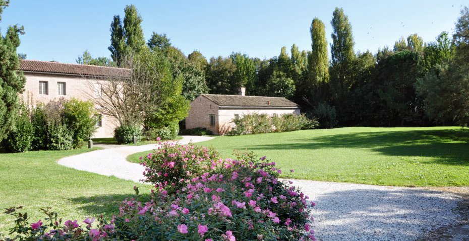 Borgo Giustiniani hat seinen Namen von dem alten Schloss Venezze, der im September 1404 von Uguccione dè Gegensatz zerstört wurde, in dem Kampf gegen Venedig. Archäologische Funde zeigen, dass das Gebiet von San Martinoseit der Römerzeit besiedelt ist. Der Steinweg, der durch den Park geht, ist in der Tat der Kommunikationsroute zwischen Ferrara und Padua. Die Hauptgebäude des sechzehnten Jahrhunderts sind in der so genannten „Stile Ferrarese“, und sie waren die Grenze zwischen den Provinzen Ferrara und Venedig. Deshalb musste man bei den zwei Säulen einen Zoll zahlen.